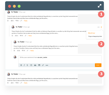 Rich media-supported comments let readers add images and video to keep discussions lively.